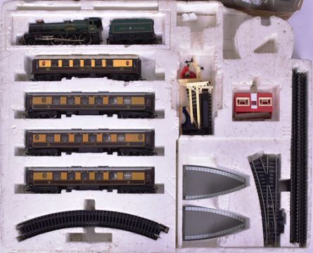 Model Railway - an original Hornby OO gauge model railway trainset locomotive set Silver Jubilee Pullman. The set containing a GWR 4-6-0 Albert Hall loco, x4 coaches / carriages, trackside accessories and track.