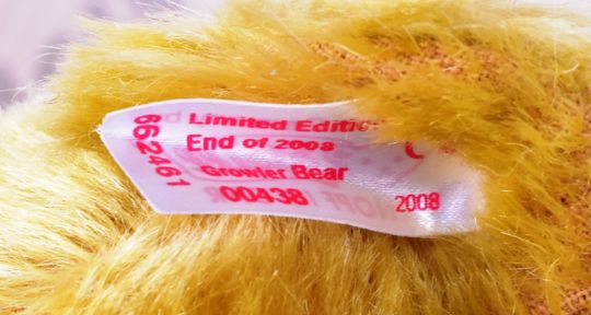 Teddy Bears - an original German Steiff made soft toy teddy bear 662461 The Growler Bear. Light brown mohair with a green satin bow and gold stitching 1908-2008. Measures approx 29cm. Boxed with certificate.