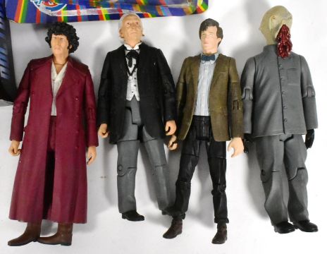 Doctor Who - a collection of assorted Doctor Who playset action figures to include; x2 Dapol Tardis, x1 Dapol Cyberman, Character Options Twelfth Doctor Figure, Eagle Moss No. 99 Black Dalek and more. Damaged packaging.