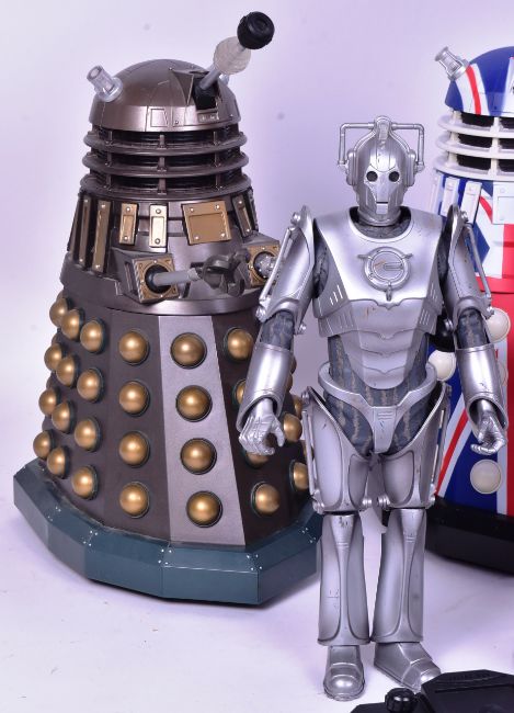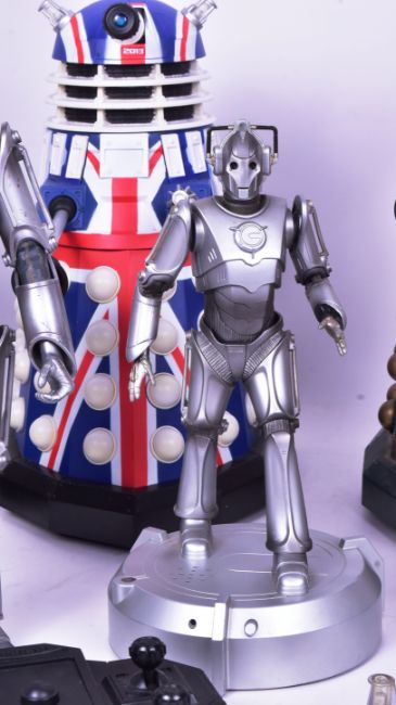 Doctor Who - Electronic Toys - a collection of (mostly) electronic / talking Dr Who toys including: x4 large scale Radio Controlled Dalek action figures (Union Jack, Supreme etc), Cyberman room guards,  12" scale Cyberman figures. All unboxed. Working order / completeness not checked.