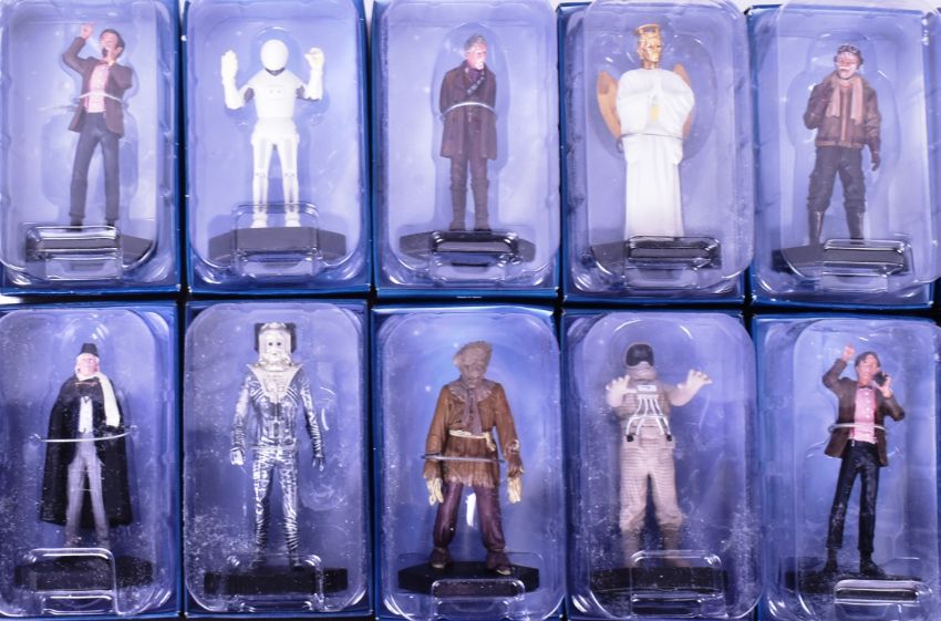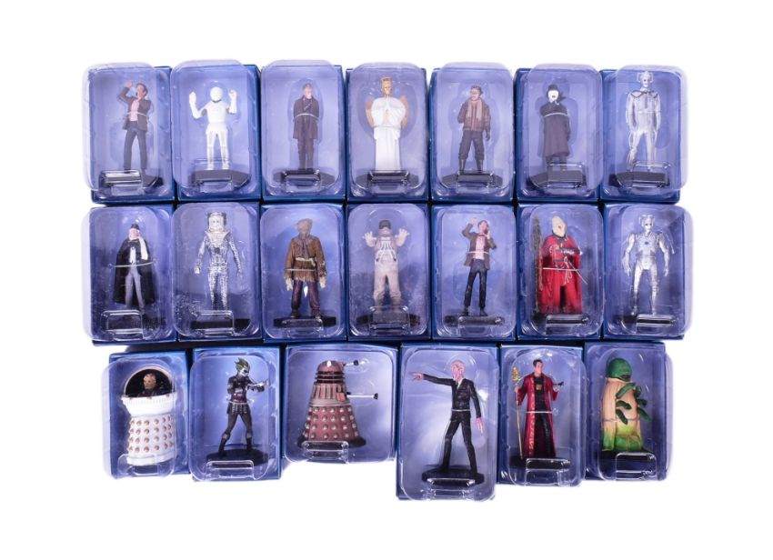 Doctor Who - Eaglemoss Figurine Collection - a collection of 20x assorted official BBC Dr Who Figurine Collection diecast / metal figures. Includes: Silurian Warrior, Alien Ambassador, Whisperman, Cyberman, Dalek Emperor Davros, and others. All housed within their original blisters, contents mint and unused. Highly detailed.