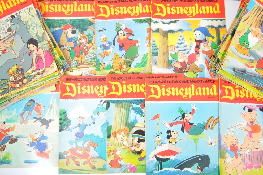 Disney - A collection of 20th century circa 1970s Disneyland magazine comics. The collection to include approximately 184 copies. Included in the collection a near full run between No. 62 - No. 244 ( including two copies of editions; 100, 113, 119, 168. Editions not included; 69, 75, 83, 101, 112, 114, 121, 123, 163, 216. ) alongside earlier editions including; 10, 17, 19, 30, 44, 50, 53, and 55.