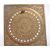 A brass perpetual astrology sun wheel calendar stand of square form, having circular dial with engraved sun and spandrel decoration to corners. Measuring approximately 14cm x 12cm.