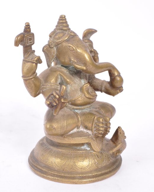 Ganesha - Hindu god of destruction and his consort the goddess Parvathi - Early 20th century bronze statue of the Hindu god. In a seated position with typical pose with feet together on a circular plinth base. Measures approx. 9cm
