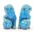 A pair of vintage 20th century ceramic pottery temple guardian Fu dogs. In blue colourway, with paw on ball in a seated position. Measures approx. 14cm tall.