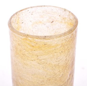 Crown Ducal / Sylvac - A collection of three 20th Century vases to include a large Sylvac ceramic vase in the form of bamboo shoots, a Crown Ducal vase of bulbous form in mottled yellow / orange and green, and a yellow bubble glass vase. Largest measuring approximately 23cm x 16cm.