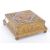 A 19th Century French brass hinged ornamental jewellery box of square form having central vignette depicting a Rococo scene within a blue enamelled border, surrounded by decorative spandrels. With cushioned beige interior and raised upon four turned feet. Measuring approximately 5cm x 11.5cm x 11.5cm.