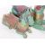 Two mid 20th century Folk Art theatre production props carved solid wooden horse figures. With hand painted decoration, lying down position in a green colourway with red seats. Two varied sizes. Largest measures approx. 67cm x 124cm x 32cm.
