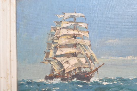 Eric Haysom Craddy (British, 1913-2007) - Bristol Savages - Mid 20th century circa 1960s oil on board maritime painting. Title the clipper of a ship with full sails on high seas. Signed to lower right. Framed. Measures approx. 40cm x 49cm