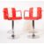 A pair of contemporary red and white vinyl and chrome bar / kitchen breakfast stool chairs. The chair having vinyl red box cushioned seat and backs over a chrome pedestal base. Measures approx. 90x50x50cm