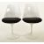 A contemporary Arkana style table and matching two chairs. The table having a white circular table top raised on a white metal tulip base. One piece shell chairs with padded black seat rests raised on tulip style bases. Table measures approx. 71cm x 88cm diameter. Each chair measures approx. 81cm x 48cm x 44cm.