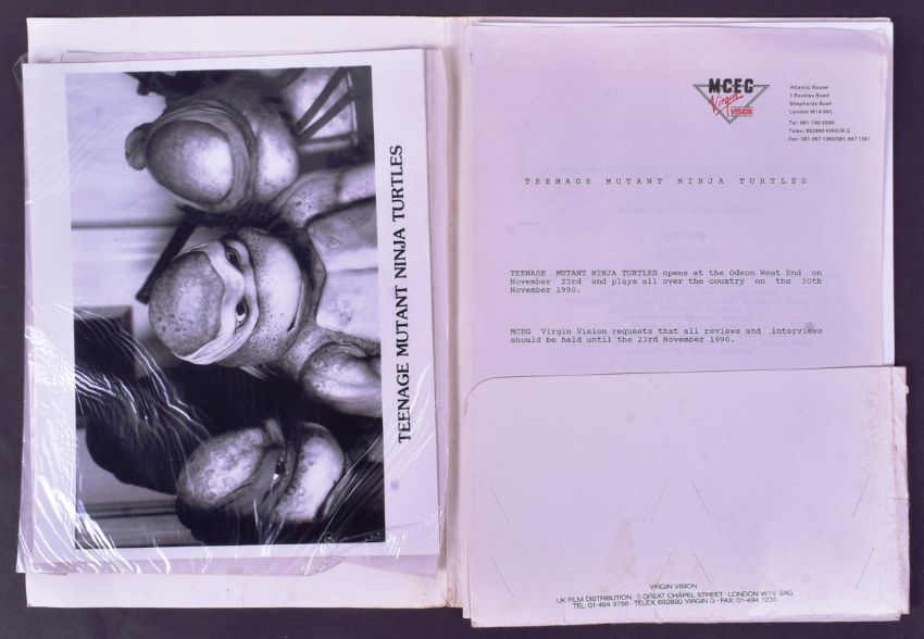 Teenage Mutant Ninja Turtles (1990 Live Action Movie) - original Virgin Vision UK press pack comprising: x2 8x10" black and white stills, release date letter, and the synopsis / film details document. All housed within its original folder.