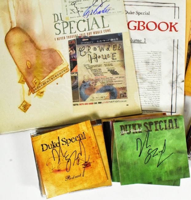Duke Special (songwriter and performer based in Belfast, Northern Ireland) - large collection of memorabilia, most autographed by Special and/or others. Includes: signed T-shirt by Special and Chip Bailey, many signed CDs, signed Five Nights At The Empire Limited Edition box-set, signed vinyls and many other items.