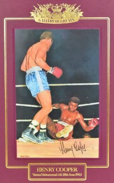 Boxing - Sir Henry Cooper (1934-2011) - Gallery Of Greats - an exclusive issue 'Gallery Of Greats' framed print depicting June 18th 1963 in which Cooper fought Muhammad Ali for the first time. Signed to the lower edge by Cooper in black ink. Presentation framed. Appears as new, undisplayed, with packaging and outer box and letter of authenticity. Total size: 45cm x 35cm, approx.