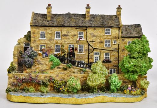 Last Of The Summer Wine (BBC Sitcom 1973-2010) - Danbury Mint - a collection of x3 original Danbury Mint made resin statues from the series. Including: Howard and Auntie Wainright - both sculpted by Gordon C Brown FRSA - and 'Balancing Act' by Jane Hart. All with very minor damage - Howard (missing three fingers), Wainwright (repaired to one leg) and Balancing Act (few minor chips). All displayed. Tallest measures approx: 22cm.