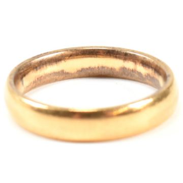 A hallmarked 22ct gold band ring. The 22ct gold band ring hallmarked for Birmingham, 1960. Maker's mark S&D. Size K. Band width 4mm. Weighs 4.9g. All weights, measurements and sizes are approximate.