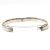 A hallmarked silver hinged bangle together with a hallmarked marcasite brooch pin. The lot to include a hallmarked silver engraved hinged bangle with safety chain, hallmarked for Birmingham, 1955. A hallmarked silver and marcasite twin leaf brooch, hallmarked with import marks for London, 1963. Bangle inner diameter measures 6.3cm. Brooch pin measures 6cm. Total weight 26.6g. All weights, measurements and sizes are approximate.