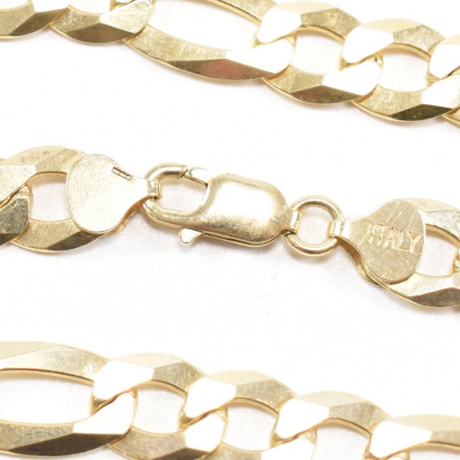 A hallmarked Italian gold on 925 silver curb link chain. The chain having a lobster claw clasp. Hallmarked for Sheffield. Sponsor's mark TJC. Marked 925 and ITALY. Necklace measures 55.9cm. Links measure 1.5cm and 2cm. Weighs 50g. All weights, measurements and sizes are approximate.