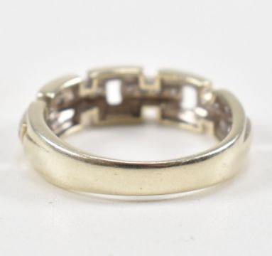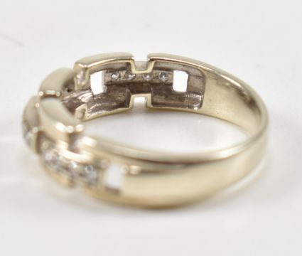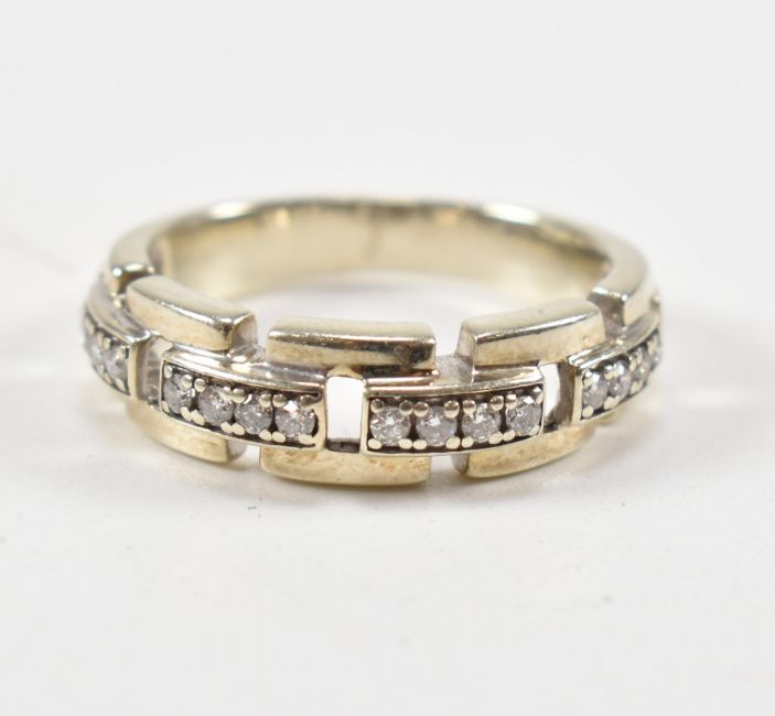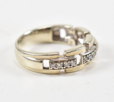 A hallmarked 9ct white gold and diamond ring. Hallmarked London, the link style ring set with diamonds. Weight 7.3g. Size V. All weights, measurements and sizes are approximate.