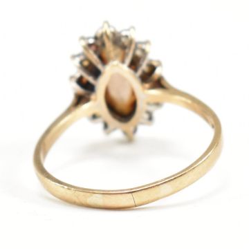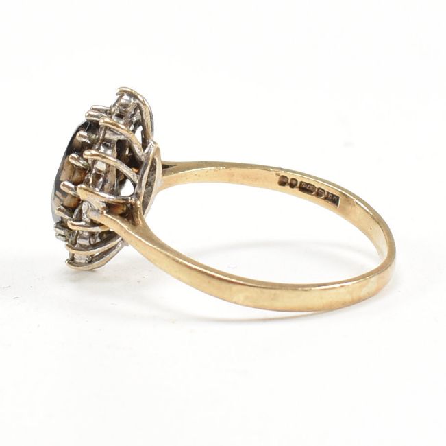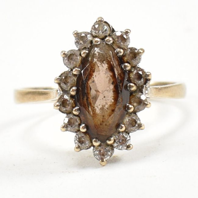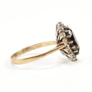 A hallmarked 9ct gold smoky quartz and CZ cluster ring. Weight 3.1g. Size S.All weights measurements and sizes are approximate.