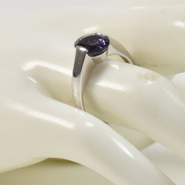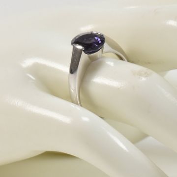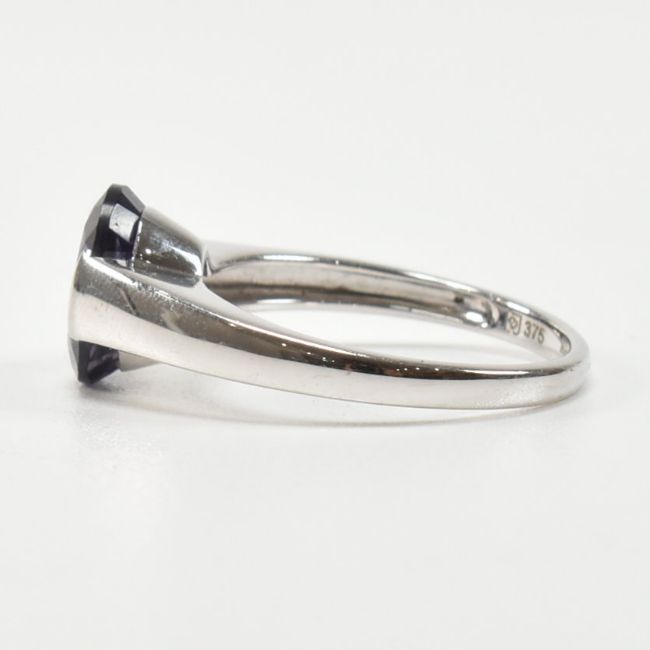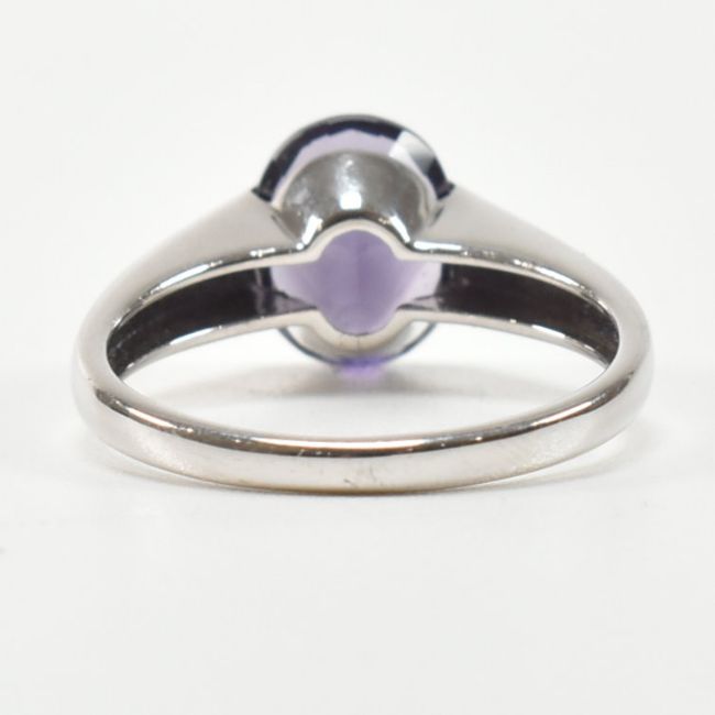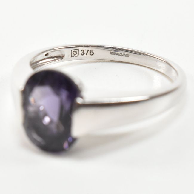 A hallmarked 9ct white gold and amethyst solitaire ring. The single stone ring having a demi bezel set oval cut amethyst on a tapering shank. Hallmarked for Birmingham 2007. Total weight approx 3.2g. Approx size Q. All weights, measurements and sizes are approximate.