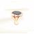 An antique rose gold and black stone signet ring. The ring having an oval cut black cabochon to gadrooned shoulders and tapering shank. Unmarked, tests indicate 9ct gold. Total weight approx 7.5g. Approx size I.5. Head measures approx 18mm.All weights, measurements and sizes are approximate.