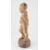 A Qing dynasty carved wooden statue of a young boy. The boy's face with a joyful expression with two tufts of hair raising from this head, leaning forward with his head slightly turned upwards, raising his arm and making Gyan mudra sign. On a plinth. Measures approx. 50cm tall.