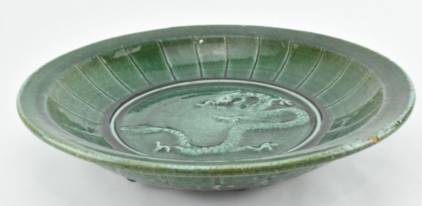 绿釉三爪龙浮雕盘