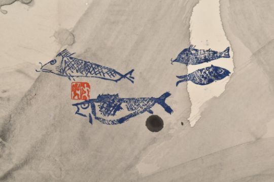 After his return from Germany in 1993, nostalgia featured more prominently in Gu Gan's work. Increasingly he recalled his happy childhood, growing up in a country village. Gu Gan gained international recognition in 1998 when he was honoured with an invitation to provide the painting for the label of Château Mouton Rothschild's grand cru of 1996. He was the first Chinese artist ever to receive this distinction, joining a exclusive group of artists including Picasso, Bracque, Matisse, Kandinsky, Miró and Hockney. Five of this works are being displayed in the British Museum, London.