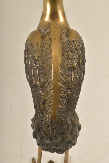 A 20th century brass figurine in form of a crane. Cranes are generally symbolically connected with the idea of longevity. Measures approx. 110cm tall.
