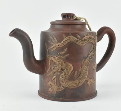 A group of six late Qing or later export famille rose plates. Each plate decorated with bouquet of flower design. Hallmark to the base. Further, a Republic period Yixing zisha clay teapot. Measures approx. 13.5cm diameter.