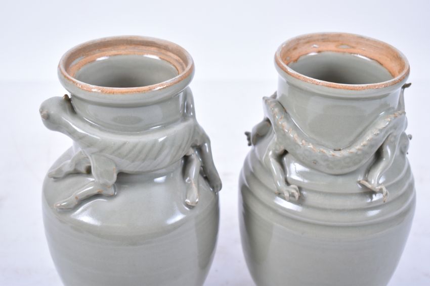 青釉贴花龙虎尊 一对