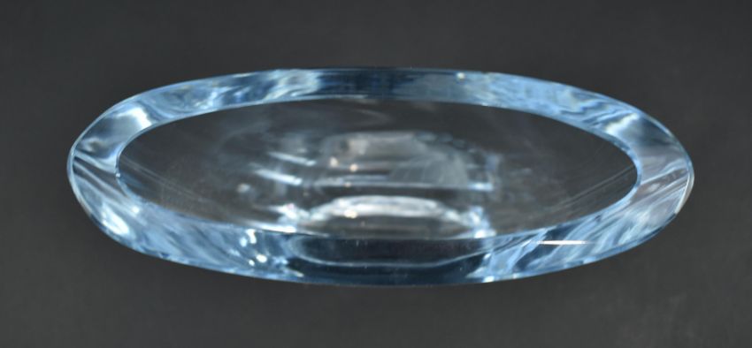 Two Swedish glass centrepieces. The lot comprising a Reijmyre Glasbruk handmade frost glass polar bear and a Strombergshyttan glass engraved vase. The vase featuring engraving of a girl, moon and stars. Large measures approx. 14cm tall x 15cm long.