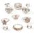 A collection of Clogau silver and Welsh rose gold rings and charms. The seven hallmarked silver and Welsh rose gold rings to include Tree of Life rings, mother of pearl, white stones, pierced heart ring, opal set heart ring, metal beadwork ring and a gem set orchid ring. All rings hallmarked for Edinburgh and signed Clogau. Rings measure K.5 - Q. The lot to also include four hallmarked silver bracelet charms; including blue stone set dragon tail and white enamel charms. All charms hallmarked for Edinburgh and signed Clogau. Charms measure largest 1.4cm x 0.8cm. Smallest 1cm x 0.7cm. Total weight 40.0g. All weights, measurements and sizes are approximate.