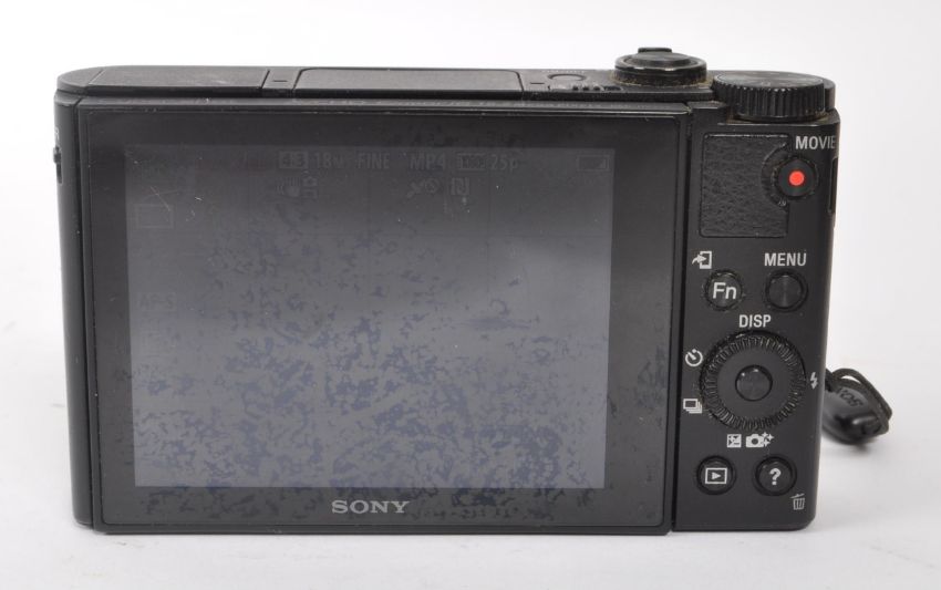 Sony - A Sony DSC-HX90V ( HX90V ) compact digital camera. The camera featuring an 18.2MP CMOS sensor couple with a 30x optical zoom Vario-Sonnar T* 4.1-123mm F3.5-6.4 zoom lens. Having pop up digital viewfinder and flash, with a 3'' 180 degree adjustable screen.  Camera powers on at time of catalogue. Vendor assures camera is in working order.