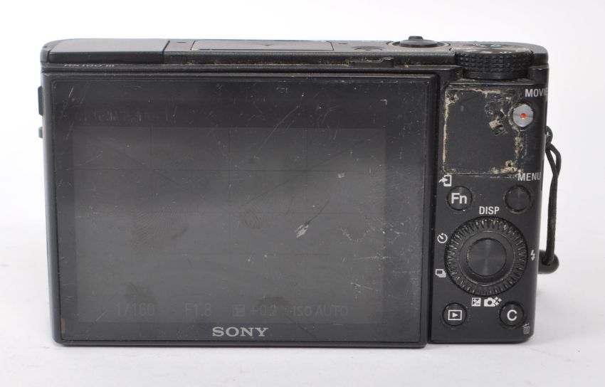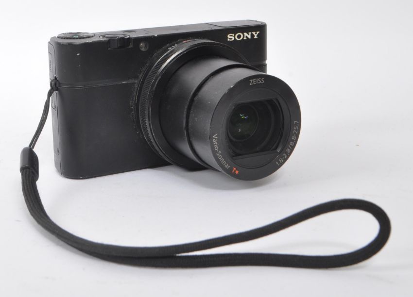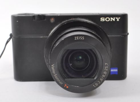 Sony - A Sony RX100 III compact digital camera. The camera featuring an 20MP CMOS sensor coupled with a Zeiss Vario-Sonnar T* 8.8-25.7mm F1.8-2.8 zoom lens. Having pop up digital viewfinder and flash, with an adjustable screen.  Camera powers on at time of catalogue. Vendor assures camera is in working order.