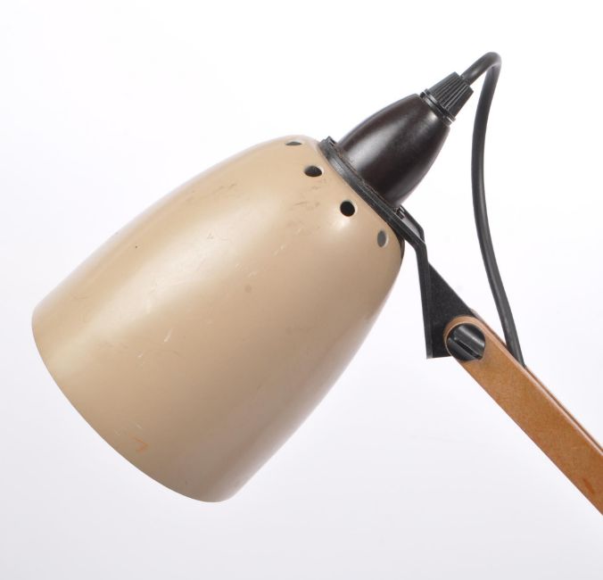 Terence Conran for Habitat - Mac Lamp No.8 - A retro 1960s adjustable Anglepoise desk / table work lamp light (Maclamp). The lamp having a brown conical shade on a twin wood arm support and brown finished base. Sold as untested. Makers mark present. 61cm tall (extended)