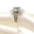 A 18ct white gold emerald and diamond cluster ring. The ring set with an oval cut emerald to a pierced diamond millegrain decorated head having pierced diamond set shoulders to tapering shank. Unmarked, however surface tests indicate gold. Size Q. Weighs 6.15g. All weights, measurements and sizes are approximate.