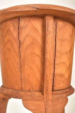 A pair of Edwardian early 20th century fruitwood floor jardinieres / planters on tripod stands. each jardiniere having a flared circular top raised on tripod cabriole legs with triangular undertier. Some cracking to the wood. Each measuring approx. 96cm tall x 36cm in diameter.