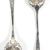 Two 18th century silver fruit serving spoons. The spoons having repousse decorated fruit berry bowls. Hallmarks rubbed. Tests indicate silver. Weight 104g.  Measures 21cm. All weights, measurements and sizes are approximate.