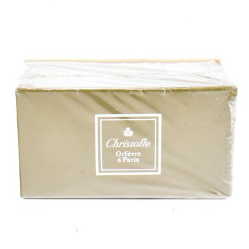 A 102 piece 12 place setting canteen of Christofel America pattern silver plated flatware cutlery with salt and pepper shakers. The cutlery to include 12 place settings for knives 24.5cm, knives 19.5cm, forks 20.5cm, forks 17cm, spoons 13.5cms, spoons 17cm, spoons 20.5cm. Together with a salad serving fork 24.5cm, a cake server 26cm, large soup ladle 25.5cm, gravy ladle 17.5cm. Two serving spoons 24.5cm and 25cm. With the addition of cruet salt and pepper shakers, cased.