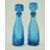 A pair of vintage mid 20th century Italian Empoli style kingfisher blue pressed glass cat and dog decanters / bottles. The lot comprising cat & dog shaped decanter with stoppers formed as animal heads. Unmarked. Each measures approx. 23cm x 6cm x 6cm.