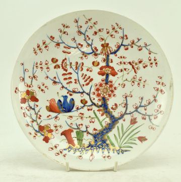 An early 19th century circa 1825 Royal Crown Derby hand painted Imari Japanese Pattern Tree charger plate. The plate decorated with birds, cherry blossom tree, red and gilt cherry blossom petals throughout. Measures approx. 25cm diameter.