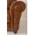 British Modern Design - A retro 20th century brown leather three seater sofa settee. The sofa having a cushioned back with brass studded details to sides. Scrolled padded armrests with further studding to base. Raised on turned wooden feet. Measures approx. 90cm x 190cm x 90cm.