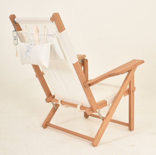 Business & Pleasure Co. - Tommy Riviera Chair - A contemporary wooden frame & white fabric folding adjustable garden / deck chair lounger. In original cardboard box. Measures approx.