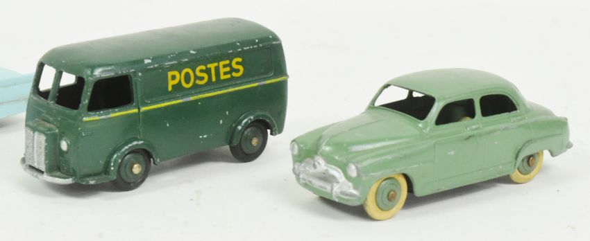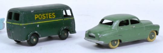 Diecast - x4 vintage French Dinky Toys diecast model cars comprising; No. 532 LIncoln Premiere, No. 24E Renault Dauphine, No. 24U Simca 9 Aronde and No. 25B Peugeot D.3.A Post van.