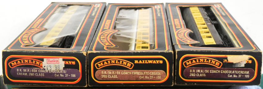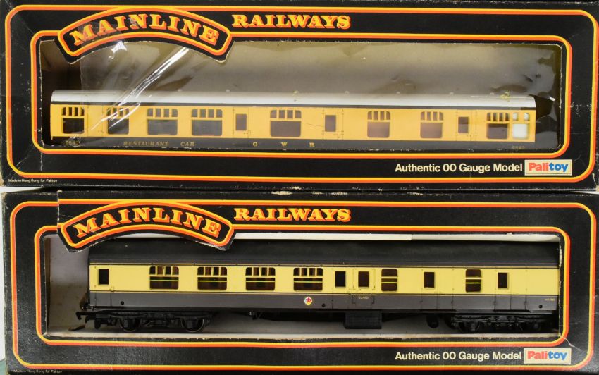 Model Railway - a collection of Palitoy Mainline and Lima OO gauge model railway trainset locomotive rolling stock coaches and carriages. All GWR Great Western Railways brown and cream examples.