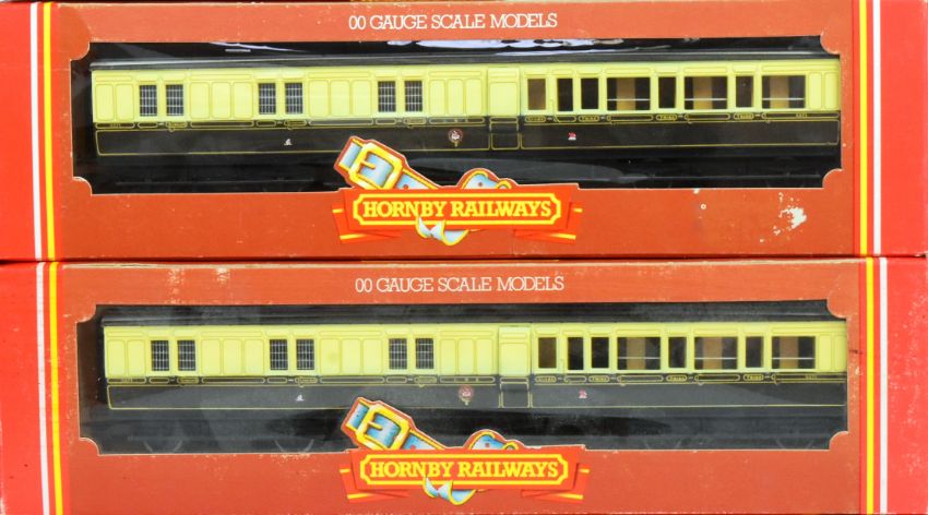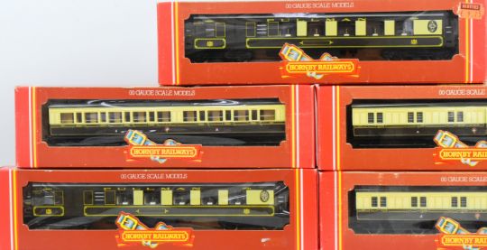 Model Railway - a collection of x9 Hornby OO gauge model railway trainset locomotive rolling stock coaches / carriages to include; Pullman coaches, Lucille Pullman car and GWR Clerestory coaches. Boxed.
