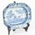 A Qing dynasty Kangxi period blue and white ceramic octagonal plate. The octagonal ogee plate decorated with landscape, trees, mountain, bridge, birds and boats in the centre. Sea wave and foliage on the rim with detailed peonies and chrysanthemums on the everted rim. A hairline crack on the side. Measures approx. 38cm x 29cm x 5cm.