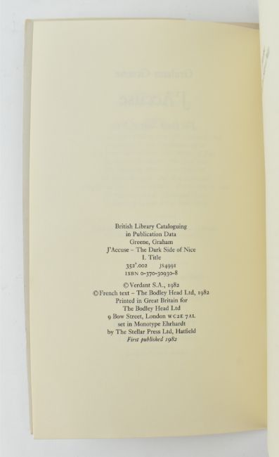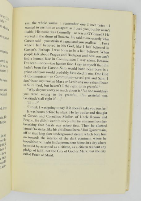 Greene, Graham. A collection of five first editions in unclipped dust wrappers. The lot comprising 1961 A Burnt Out Case publ. Heinemann, 1985 The Tenth Man publ. The Bodley Head; 1967 May We Borrow Your Husband? publ. The Bodley Head; 1982 J'Accuse publ. The Bodley Head, and 1978 The Human Factor publ. The Bodley Head. All in smart condition, minor sunning to spine of May We Borrow Your Husband? & light edgewear to head of the spine and hinge of A Burnt Out Case, otherwise no inscriptions or bookplates, a bright collection. 8vo.